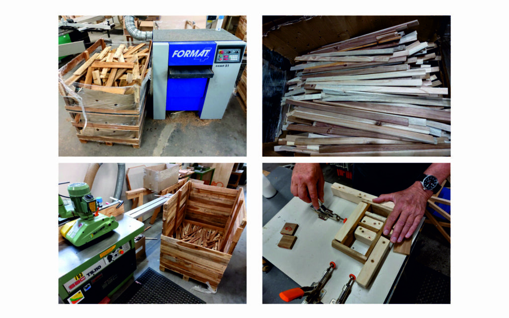 Die Jury lobte dessen kreative Idee, hochwertigen Holzverpackungsmüll in langlebige Designobjekte zu verwandeln: